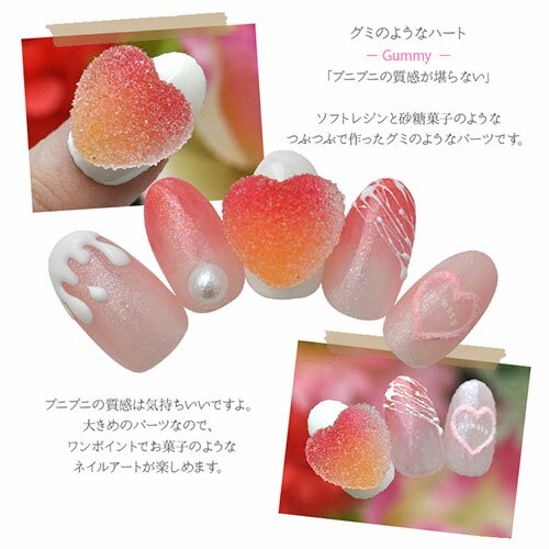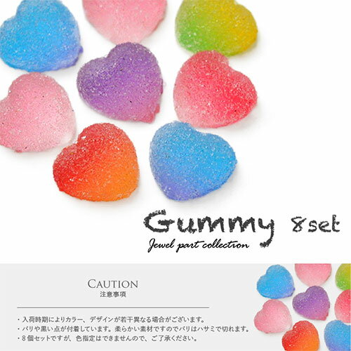 注意事項 グミのようなハート(gummy 8個) 「プニプニの質感が堪らない」 ソフトレジンと砂糖菓子のようなつぶつぶで作ったグミのようなパーツです。