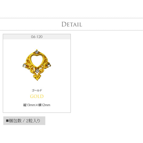 製品情報 梱包数 2粒 サイズ 縦13mm×横12mm 発送方法 メール便190円/佐川急便470円(沖縄・離島以外)/ゆうパック410円〜 用途 ジェルネイル・レジン用品 オススメポイント ハートフレーム(heart) 中心がくり抜かれたフレームです。