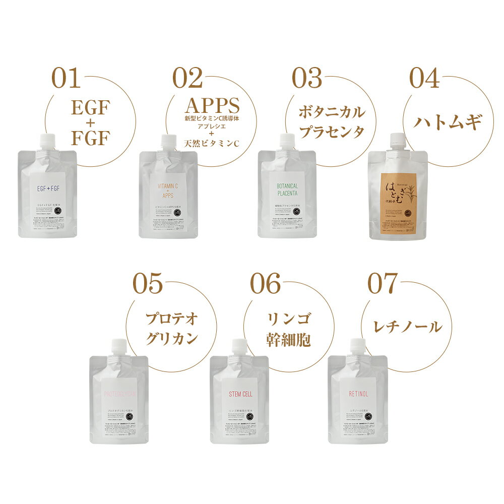≪メール便≫選べる7種の浸透型の濃厚原液化粧水/【レチノール(新発売)】【EGF+FGF】【APPS(新型ビタミンC誘導体 アプレシエ)】【ボタニカルプラセンタ】【プロテオグリカン】【植物幹細胞】【ハトムギエキス】話題の幹細胞コスメ[お得な詰替パウチ110ml]