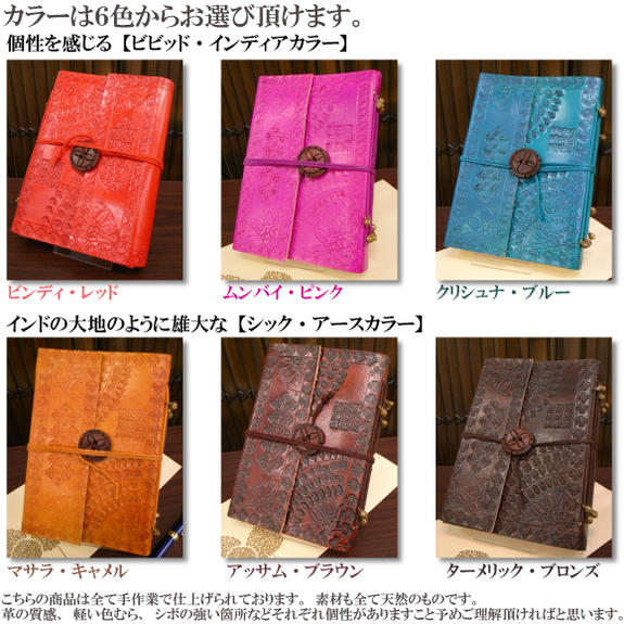 ■LOVERS INDIAオリジナル■ ■型押しダイアリーサイズ比較表■ 新書サイズ 重厚感のある大きめサイズ 【高さ:約23cm】 バイブルサイズ システム手帳代わりに万能サイズ【高さ:約18.5cm】 ハンディーサイズ 小さめバッグもOK手のひらサイズ【高さ:約15.0cm】 天然石付、特大サイズ(高さ約33cm)は⇒ コチラ ギフトにもOK♪