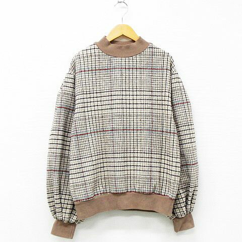 【中古】インディブランド INDIBRAND スウェット トップス 長袖 ハイネック チェック柄 リブ切替 ウール混 アイボリー 茶系 レディース 【ベクトル 古着】 200310 ベクトルプレミアム店